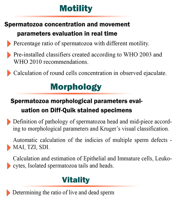 3.全自動測量和計算世界衛生組織(WHO)所要求的各項精子分析參數;